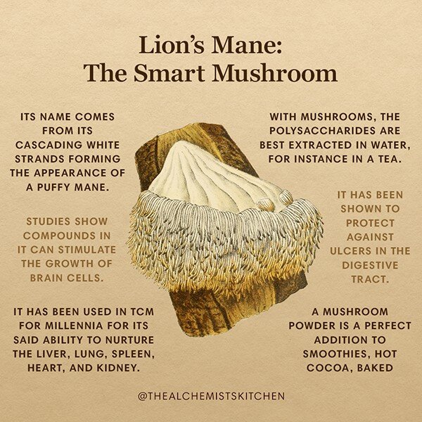 Lion’s Mane helps with cognitive function as well as boosting energy naturally and aiding with digestion.